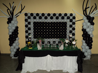 +1 arco na entrada + 10 tufos pelo salão + caixa de presentes + 2